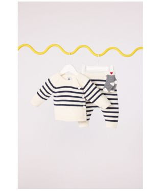 UNISEX SET COMPOSED OF A KNIT CARDIGAN AND TROUSERS.