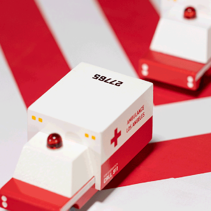 If you're a movie buff, you know LA features prominently in lots of tough screenplays. When make-believe play happens, a tiny LA County rescuer is precisely what's needed to keep all the characters in good health. Tiny silver blanket accessories sold separately. Materials: Solid Beech Wood, water-based paint and clear urethane coat. ABS plastic wheels. Safety tested according to US CPSIA and European, Australian and New Zealand regulations. Not for children under 3 years of age. Dimensions: 3.3" L x 1.6" W x 2.6" H (8.4cm L x 4.1cm W x 6.6cm H) Weight: 6 oz/ 232g Packaging: 3.7" L x 1.7" W x 3.7" H (9.4cm L x 4.3cm W x 9.4cm H)
