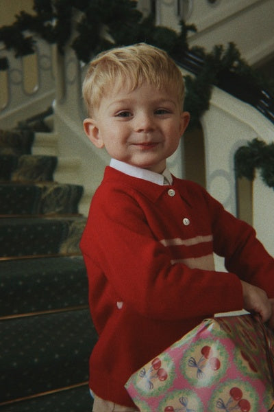 Soft and warm wool sweater in a classic polo design. Features rib cuffs, a regular collar, and front button placket.