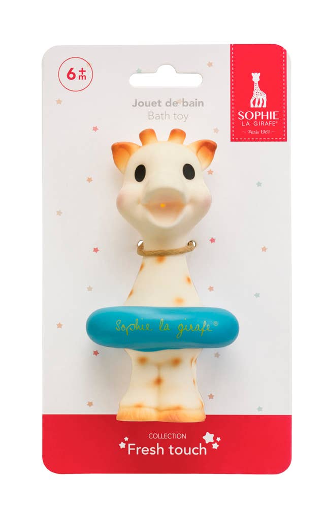 For lots of bath time fun and splashing! Here comes sophie la girafe again, this time as a floating, squirting toy for baby to play with in the bath. She squirts water when squeezed. Ships in blue and yellow.