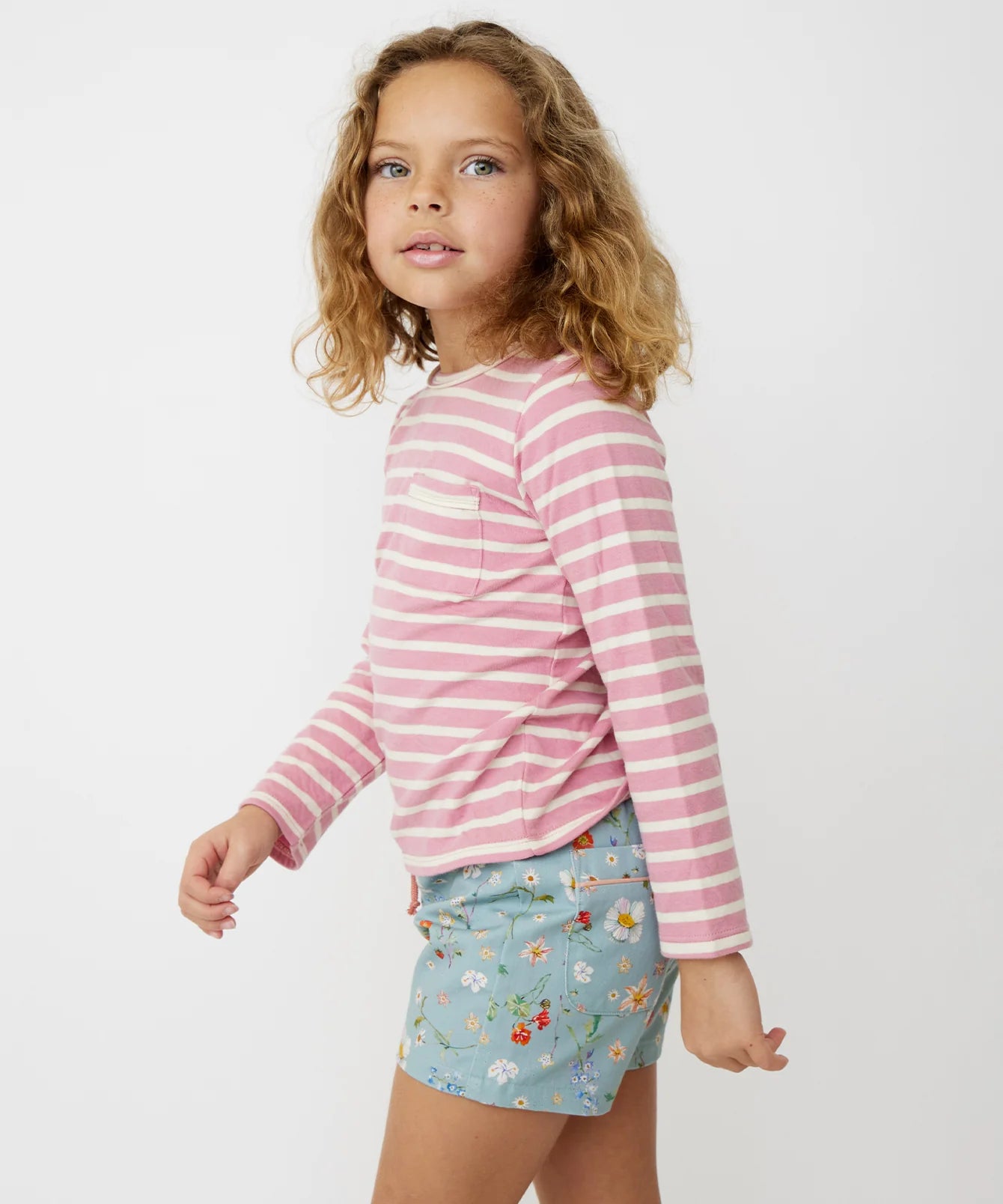 Our bestselling adjustable child's short is made for play. The shorter inseam makes running and jumping a breeze and the drawcord fits growing waistlines for longer wear. The easy dressing style means no zippers or buttons!