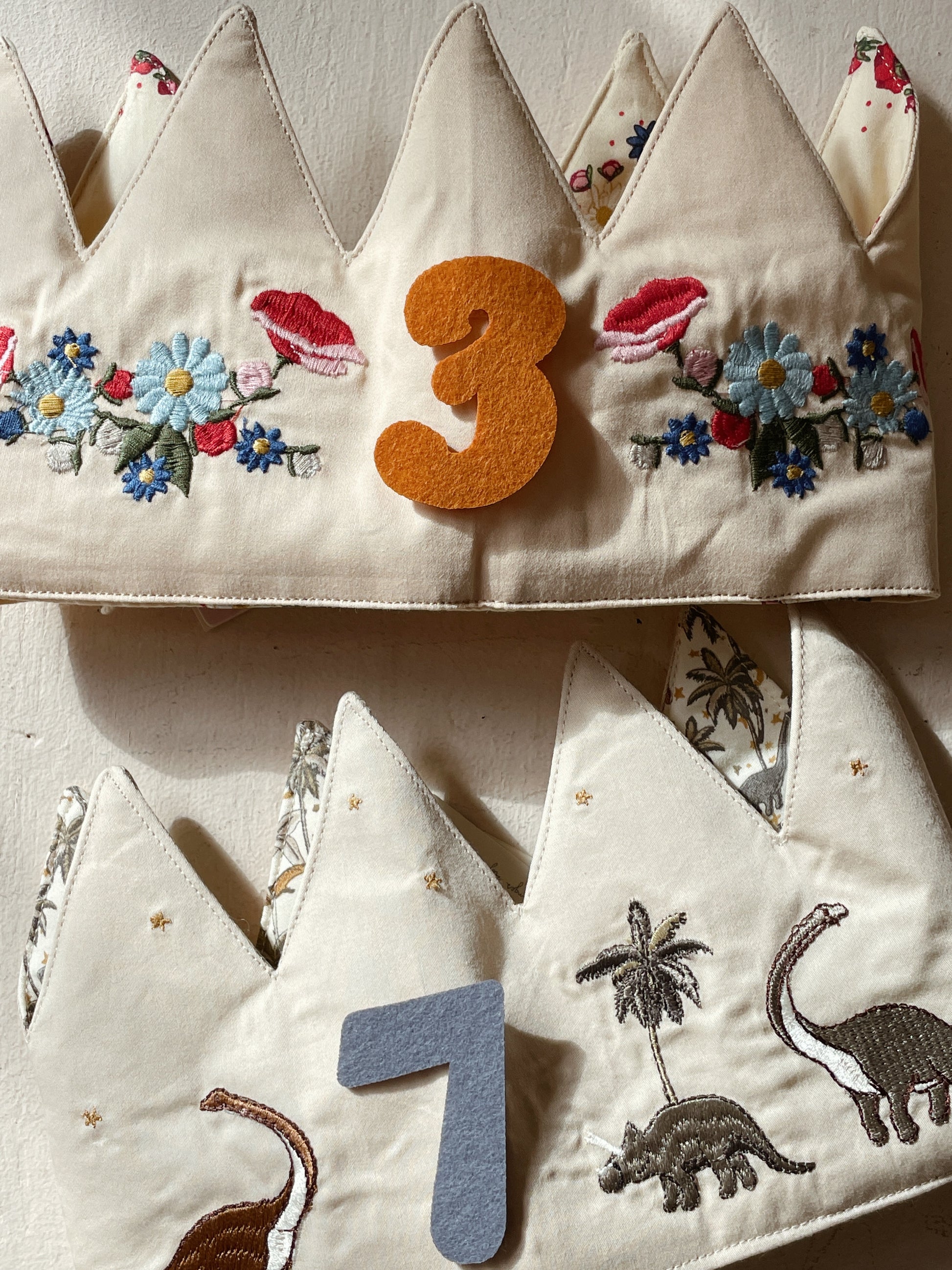 A birthday crown for the birthday child. Made in 100% cotton with 100% polyester filling. Width: 26 cm Height: 14 cm This product is OEKO-TEX® STANDARD 100, class 1 certified by DTI Tekstil, DTI 2276-361 Suitable for all ages