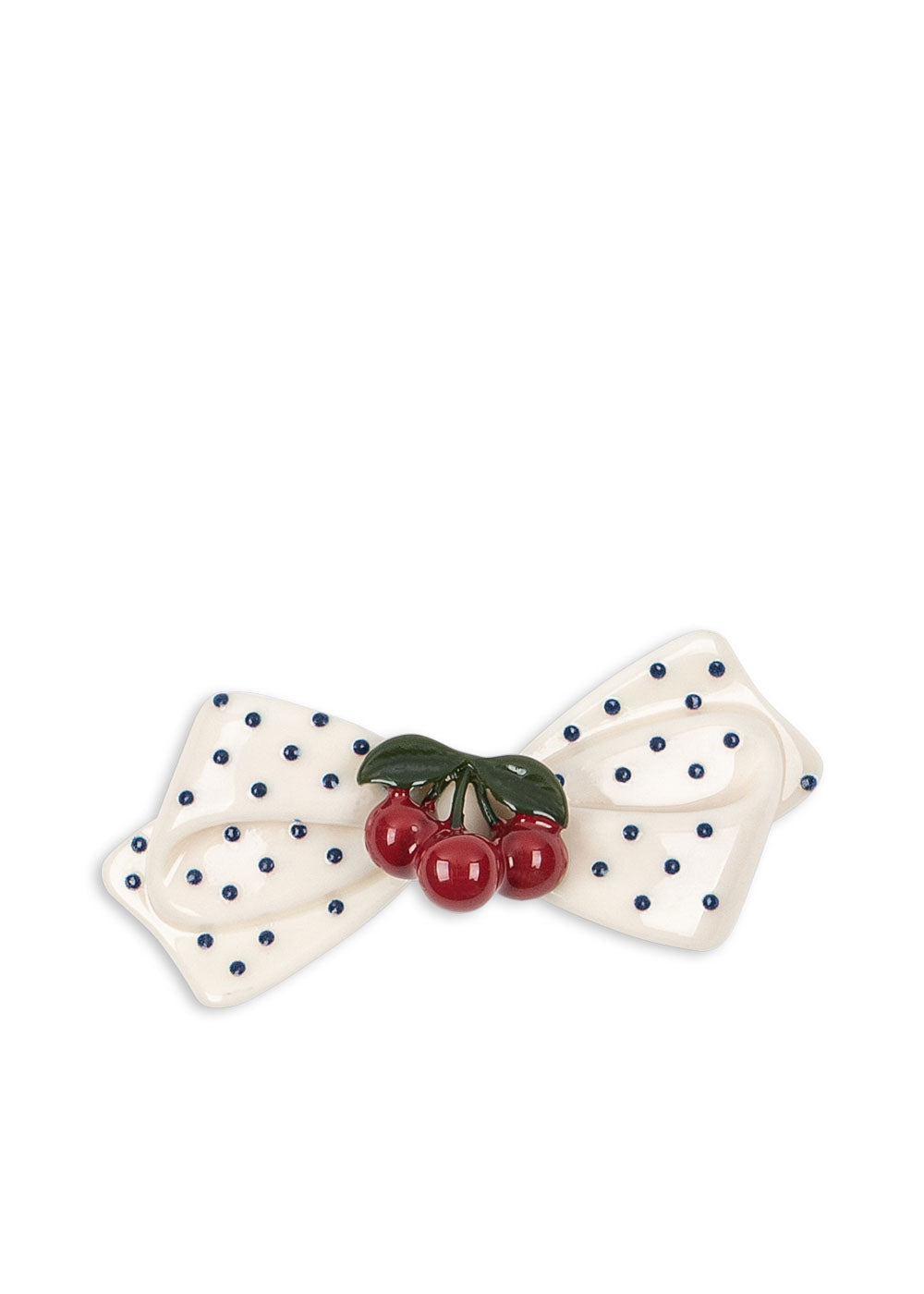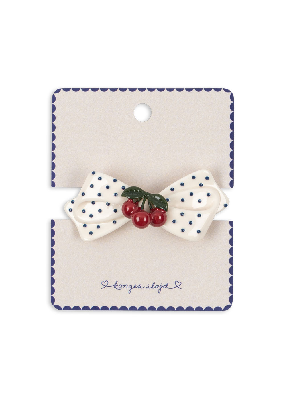 Classic hair clip with our signature dots, a bow, and cherries on. The perfect finishing touch to any little outfit. Suitable from 3y+