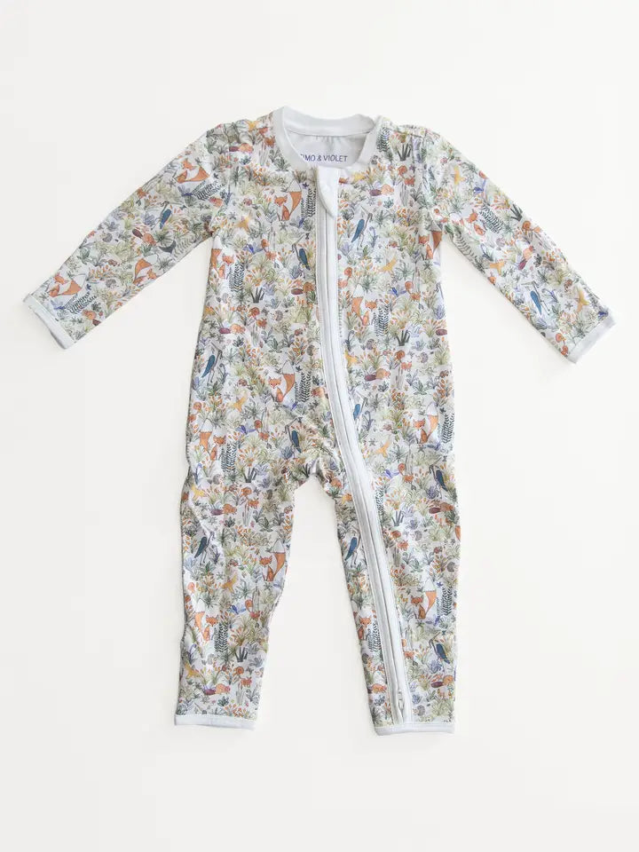 The perfect one-piece in our Foxy Forest print. With fold-over hand mittens (for sizes up to 9-12 months) to ensure no scratches, fold-over foot cuffs for versatility, and a double zipper for easy diaper changes. **Adheres to all CPSC safety regulations and never treated with flame-retardants or chemicals.