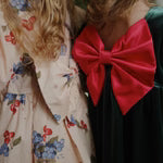 Soft velvet dress with a decorative bow in the back.