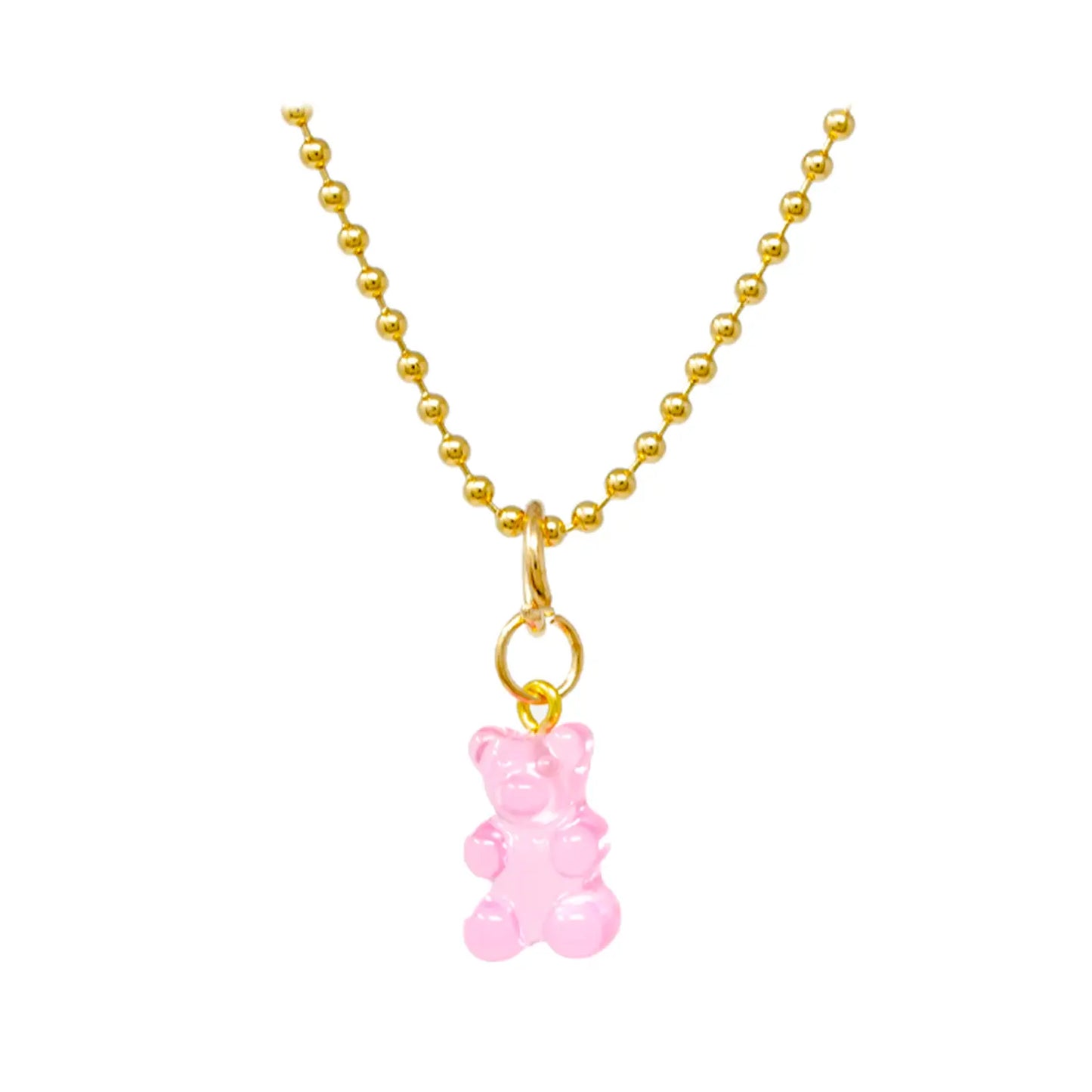 This gummy bear necklace looks so good you might just want to eat it! (Not Edible) The chain is a "ball chain" design and is adjustable.
