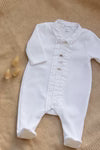 This Pajamas White For Baby boy mixes elegance and tenderness. THE Pleats religious delicately structure the front, while charming hedgehogs EmbroideredAdd a fun touch. THE Pointed collar is adorned with a Embrodery TC, for a neat and refined finish. An essentially essential essential for the first days.