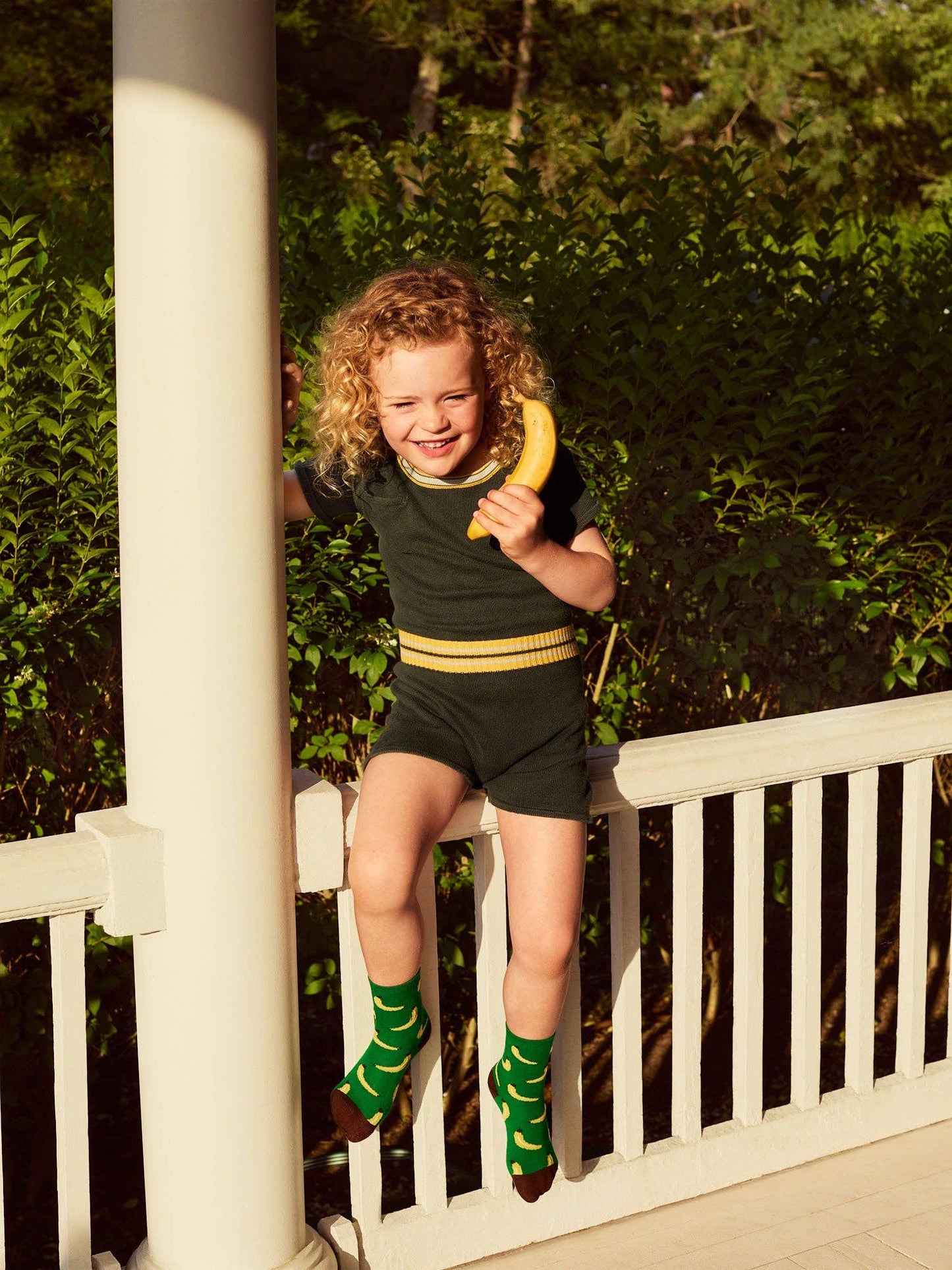 Let’s go bananas in these soft cotton-blend crews! They’re ripe for the taking and oh-so a-peel-ing. Made in Portugal with traceable yarns at a family-run factory that operates entirely on renewable energy. cotton/polyamide blend made in portugal