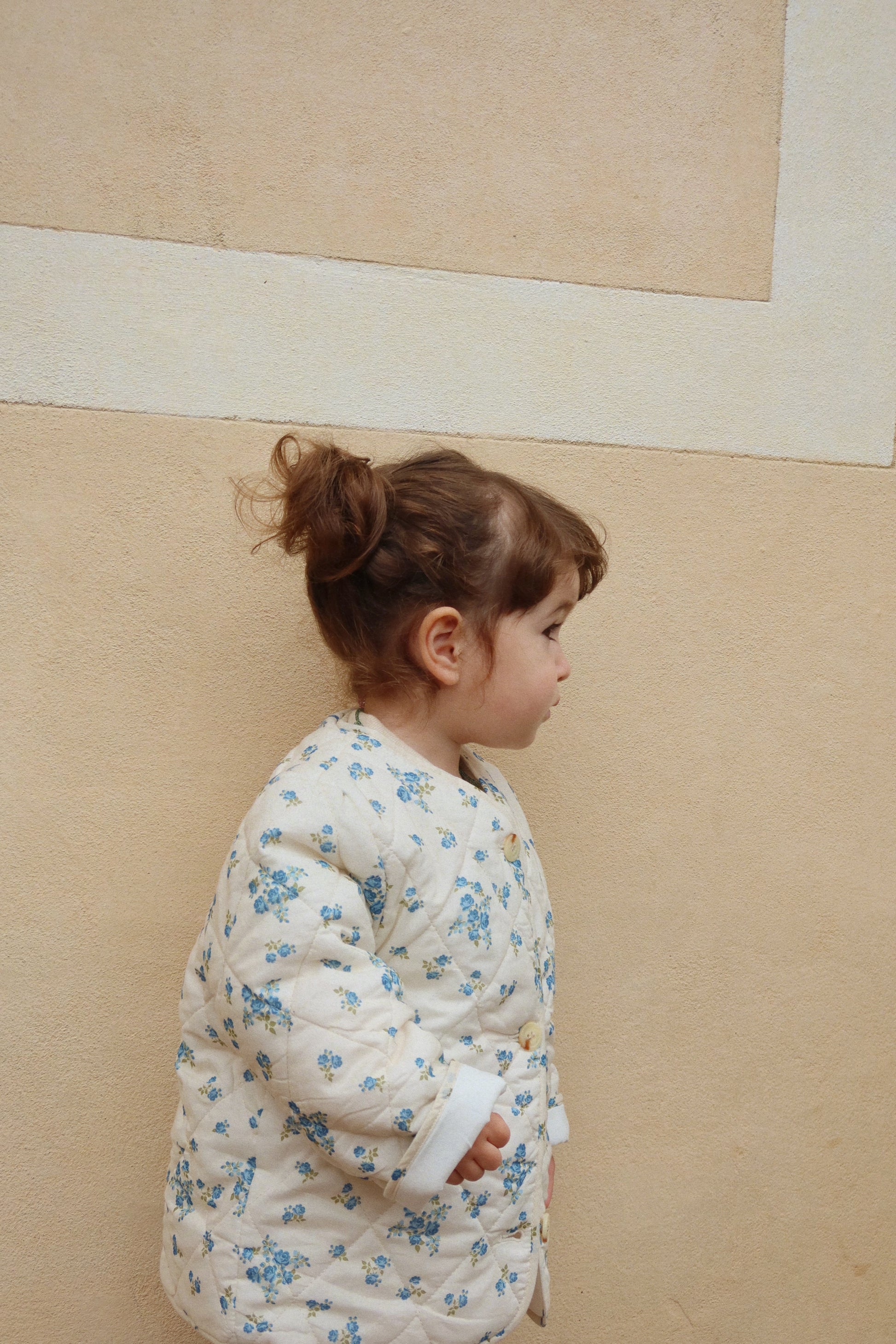 Soft, padded quilt jacket in a classic silhouette and full button opening in front.