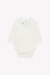 This body long sleeves for Baby boy, In ecru color, is distinguished by its Pointed collar decorated with "snow" embroidery in Blue glacier, bringing a fun and modern touch. Made of soft cotton, it offers optimal comfort for Baby. To match with a Dungaree or a Trousers From the same collection for a chic and relaxed look, perfect for days full of adventures
