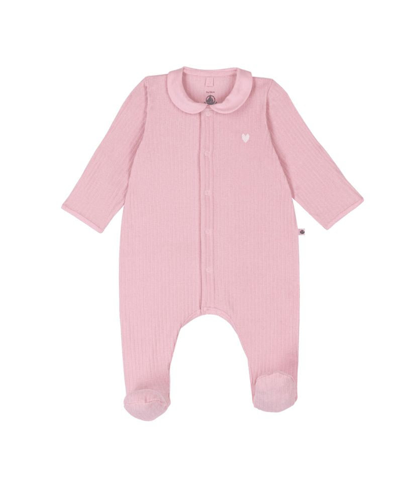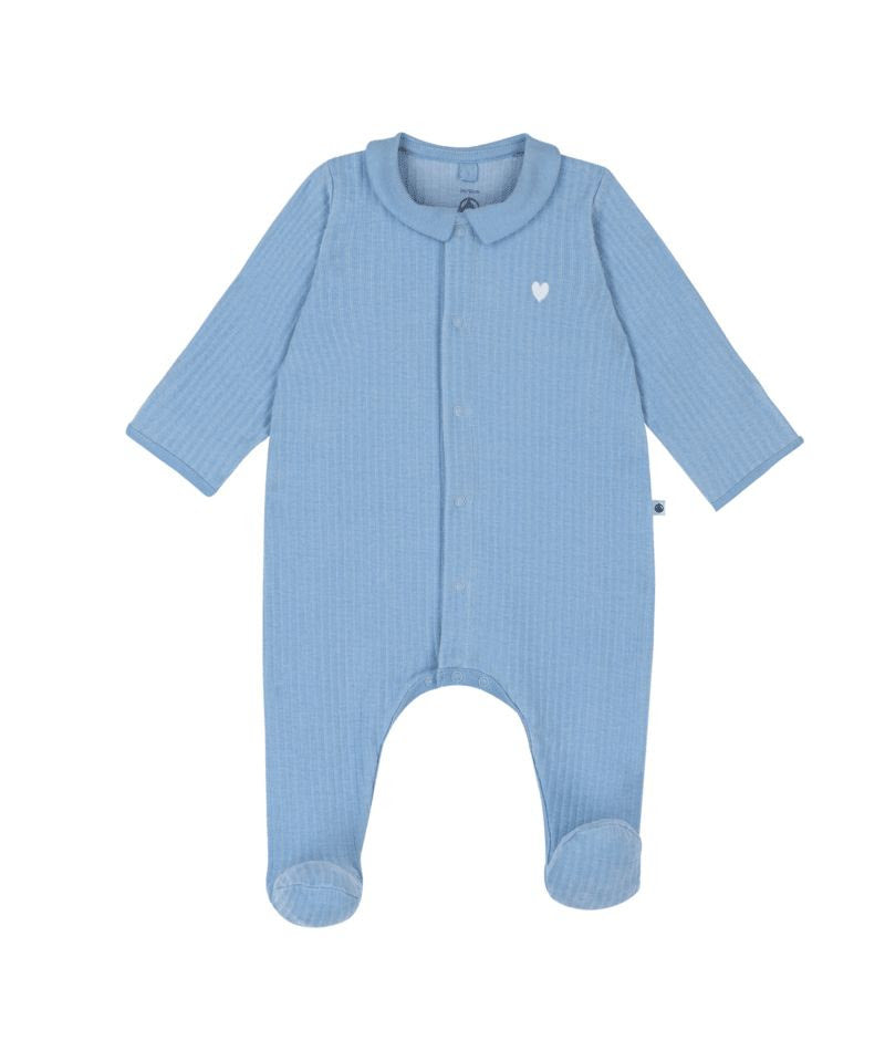 Snap Velour Footie w Collar/Heart Emb- Petit Bateau SP26