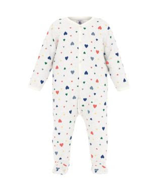 Velour Front Snap Multi Heart Footie - Petit Bateau FW25