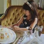 Designed with a soft cotton lining and a voluminous skirt. Closes at the neck with a single mother of pearl button.